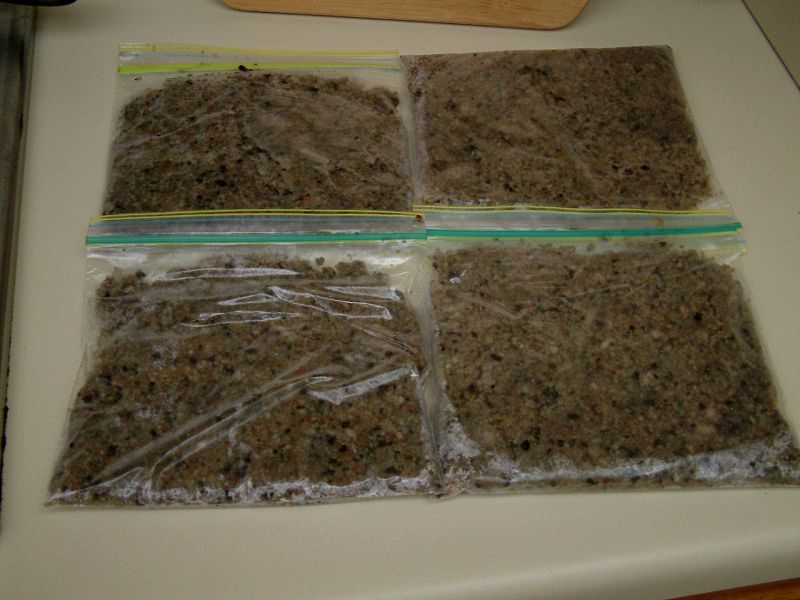 پس از مخلوط شدن و بدست آمدن یک خمیر آن ها در پلاستیک های کوچک ریخته و تخت کنید و تمام هوای آن را بگیرید و روی آن با خط کش خط ایجاد کنید تا بعدا موقع استفاده راحت تر برش زده شوند . آنها را در فریزر قرار دهید تا یخ بزنند .
